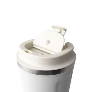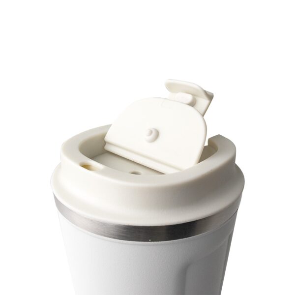 Descrição: Copo térmico de inox 350ml com parede dupla, parte inferior com borracha antideslizante e tampa rosqueável com abertura de bocal.