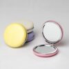 Descrição: Espelho plástico sem aumento, verso com película de ferro com acabamento fosco e detalhes de brilho tipo glitter.