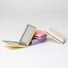 Descrição: Espelho de vidro sem aumento com moldura arredondada em plástico. A tampa protetora, quando inclinada para trás, funciona como apoio para mantê-lo aberto sobre superfícies planas.