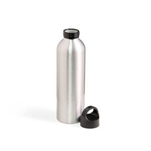 Descrição: Garrafa de alumínio 630ml. Possui tampa plástica rosqueável com alça integrada.
