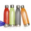 Descrição: Uma garrafa plástica com estrutura que une leveza e praticidade. Com capacidade de até 600ml, possui tampa rosqueável de alumínio com alça embutida em nylon, própria para facilitar o transporte.