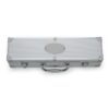 Descrição: Kit churrasco 5 peças em maleta de alumínio com travas de segurança, contém três facas de corte, tesoura e chaira. Parte interna da maleta com revestimento em tnt e suportes de velcro para fixação das peças.