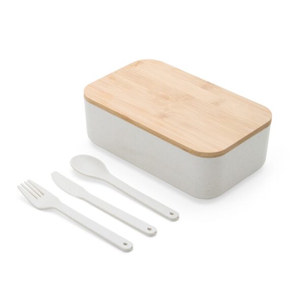 Descrição: Marmita em fibra de trigo com tampa de bambu de 1 litro. Possui elástico para um transporte seguro. Acompanha garfo, faca e colher. Obs: O tempo de aquecimento no micro-ondas não deve ultrapassar 3 minutos.