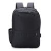 Descrição: Mochila de poliéster de 24 litros com dois compartimentos, sendo o principal com um bolso raso para notebook de até 15,6 polegadas. A mochila possui um adaptador USB externo e quatro bolsos: dois laterais com elástico, um com velcro e um com cordão ajustável.