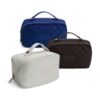 Descrição: Nécessaire de PVC e PU resistente à água, com duas alças laterais de mão.